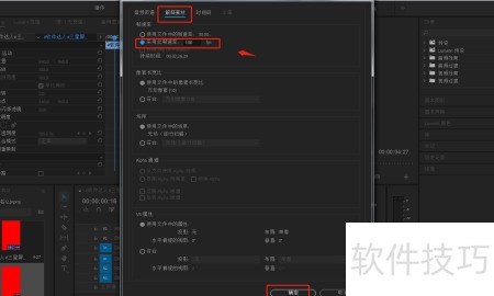 5、 在修改剪辑窗口中,选择解释素材并勾选使用此帧速率。