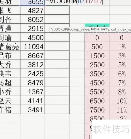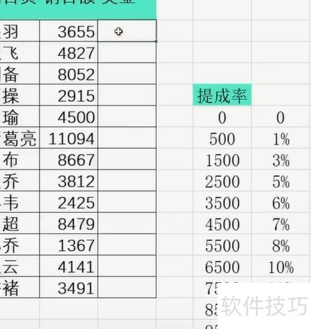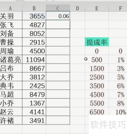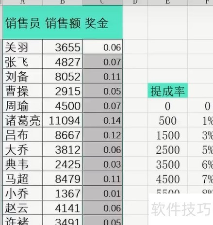 通过VLOOKUP函数查找提成率表,匹配每位销售员对应的提成比例,再结合销售额计算出各自应得的奖金金额。