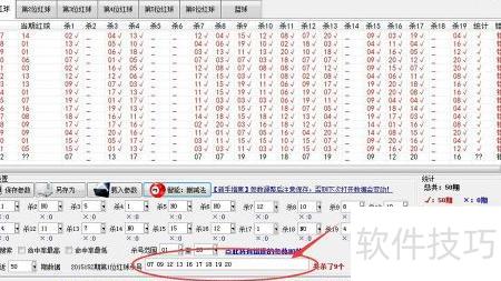 8、 数据完成后,进入十九式定位杀红的详细表格与参数设置界面,因先前已保存参数,此处直接显示之前选定的公式组合,可立即与待验证的开奖号码进行对比分析。