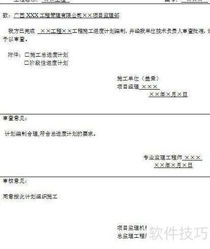 施工进度计划报审表填写规范及报验流程,包括承包单位填报方法、注意事项、报送步骤,以及监理工程师对施工单位提交资料的审核要点与审批程序。