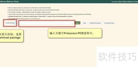 5、 注册并完成验证后,可通过百度搜索edelivery关键词,进入Oracle官方下载页面。在页面搜索框中输入Primavera P6进行查找,随后按照图示步骤操作,即可顺利完成软件下载与获取流程。