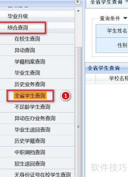 4、 进入综合查询,选择全省学生查询功能。