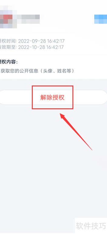 5、 进入目标应用页面,找到解除授权选项并点击确认操作即可完成。