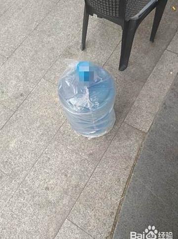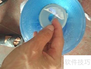 5、 撕去桶装水外包装,用剪刀整齐地剪开小口。
