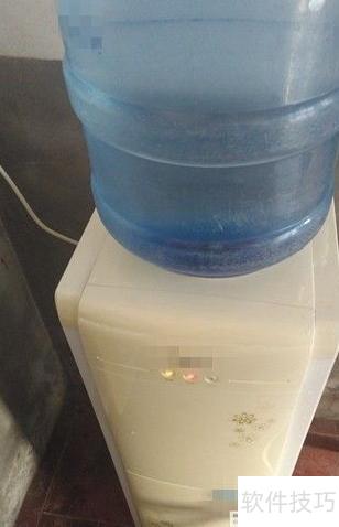 2、 用瓢舀水倒入饮水机进水口冲洗,同时擦拭桶身周围。