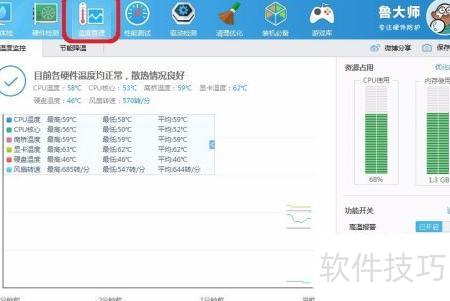 3、 点击鲁大师温度管理中的惹惹良功能