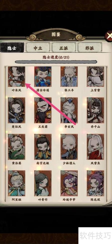 2、 进入图鉴,点击叶长风头像即可查看。