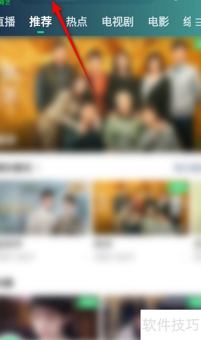 1、 打开手机爱奇艺应用,点击搜索栏进行查找。