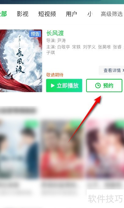 3、 点击预约按钮,即可成功预约观看长风渡。