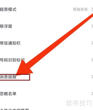2、 继续点击消息提醒设置选项