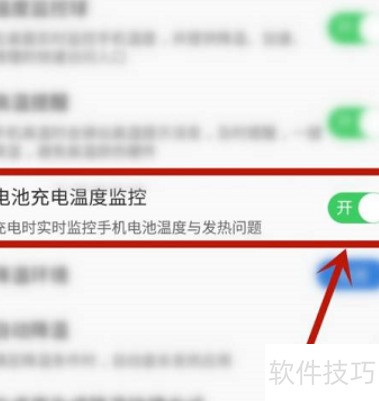 6、 第六步:开启电池充电温度监控的开关即可完成设置。