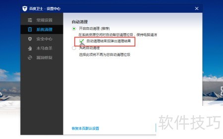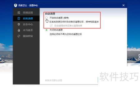 4、 开启自动清理后,百度卫士将在系统空闲时自动清除电脑垃圾。
