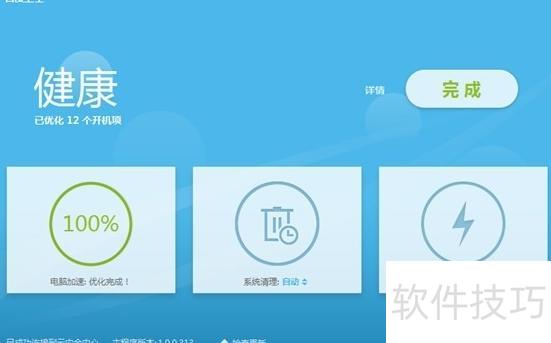 2、 百度卫士是百度推出的一款系统优化工具,秉承极简设计理念,操作简洁高效,能快速解决电脑运行中的各类问题。其电脑加速功能尤为实用,只需轻点鼠标,即可启动深度优化,让电脑瞬间进入极速状态。实际体验中,一台原本打开文档都频繁卡顿的设备,在启用该模式后性能显著改善,软件启动流畅,界面切换顺滑迅捷,毫无迟滞感。整机响应速度大幅提升,仿佛重回新机状态,令人打消了更换设备的想法,重新感受到久违的畅快操作体验。