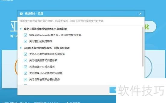 4、 当前的操作系统和各类软件普遍存在功能冗余、组件臃肿的问题,大量后台服务与设置选项看似繁多,实则对多数用户而言实用性有限。许多用户为提升运行效率,纷纷寻求系统精简方案,在各类技术论坛中探讨如何关闭不必要的进程与服务。在此背景下,百度卫士推出的极速模式为系统瘦身提供了切实可行的解决方案。该模式通过智能识别并停用非核心服务,显著减轻系统负担,提升整体运行流畅度。同时,充分考虑用户的个性化使用习惯,极速模式还提供多项自定义选项,允许用户按需选择保留或关闭特定功能,兼顾性能优化与使用灵活性。若用户后续需要恢复完整功能支持,只需切换回高速模式即可。作为默认优化状态,高速模式侧重于调整系统参数与网络配置,在日常使用中持续增强系统响应能力,改善网络连接质量,实现稳定高效的使用体验。