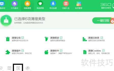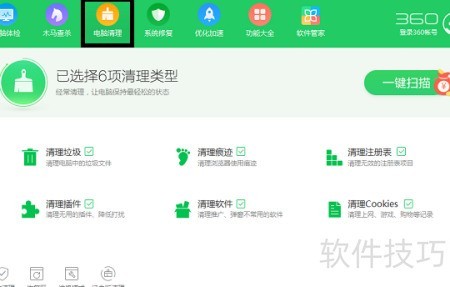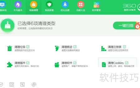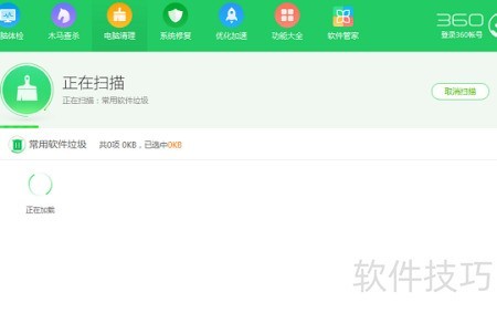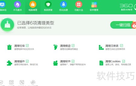 使用360卫士的清理功能,可快速扫描并清除系统垃圾文件,提升电脑运行速度。