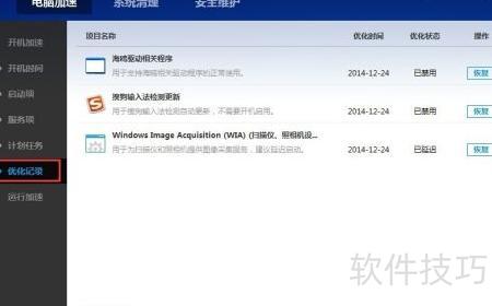 9、 点击左侧优化记录,可查看电脑已完成的所有优化项目。