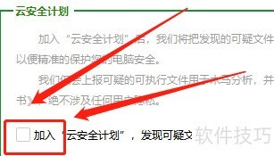 8、 取消加入云安全即可。