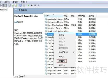 4、 右键点击服务,选择属性后可关闭、禁止或重新启动。