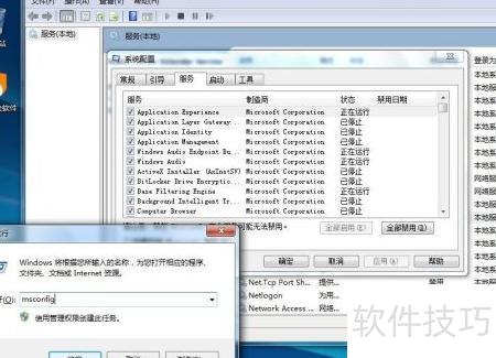 7、 在运行框输入msconfig可打开系统配置,选择开机启动所需服务。
