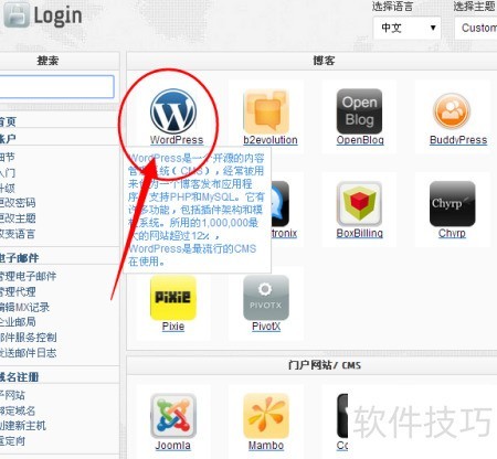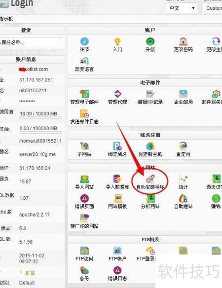 1、 访问10G.me网站注册账号,根据指引完成注册后登录,进入cPanel控制面板,查找并点击自动安装程序选项。