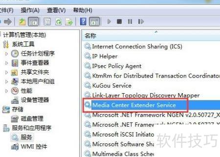 5、 在服务列表中查找并选中Media Center Extender Service项。