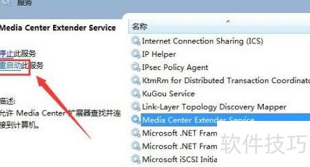 7、 点击按钮,即可重启Media Center Extender服务,恢复相关功能。