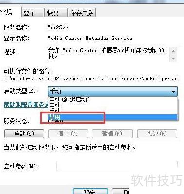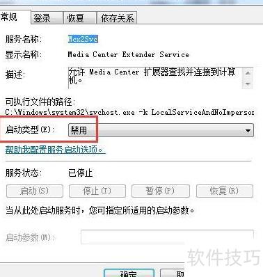 在Win7系统中,可通过服务管理器找到Media Center Extender Service并将其启动类型设为禁用。