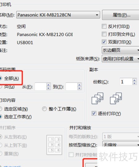 2、 进入打印页面后,默认会打印全部内容,直接点击确定即可完成打印操作。