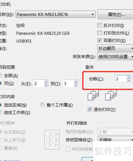 5、 打印页面可设定文件打印的份数。