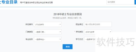 2、 请输入院校及专业信息,学科类别必填,其余至少填一项,然后点击查询。