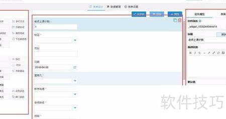 7、 随意选择一个表单进行操作演示:将左侧的基础字段、增强字段及部门成员字段拖拽至中间设计区域,随后在右侧调整字段名称与属性,并设置相应权限。完成后,点击上方的保存或预览按钮,即可查看最终效果。整个过程简单直观,便于快速上手。