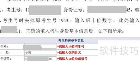 2、 请输入考生号、姓名、身份证号及其它相关信息。