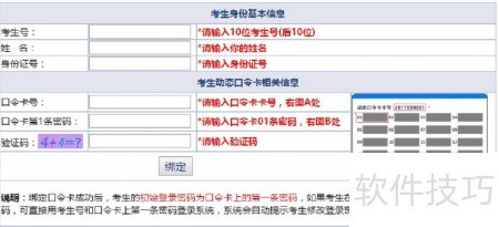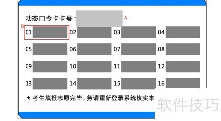 4、 随后输入考生动态口令卡信息,具体内容见图示。