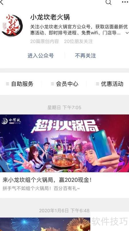 微信作为常用社交平台,集多种功能于一体。若想取消关注小龙坎老火锅公众号,只需进入公众号主页,点击右上角菜单,选择不再关注即可完成操作。