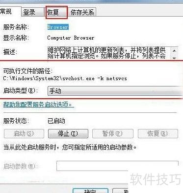 2、 进入控制面板—管理工具—服务界面,找到Computer Browser服务项,在其属性的常规选项卡中,将启动类型更改为自动。若设置后问题仍未解决,则切换至恢复选项卡,针对第一次失败、第二次失败以及后续失败三种情况,均设置为重新启动服务。若依旧无效,可尝试通过注册表进行进一步配置。点击开始菜单,选择运行,在弹出的对话框中输入regedit并确认,以打开注册表编辑器。随后依次定位到路径:HKEY_LOCAL_MACHINESOFTWAREMicrosoftWindowsCurrentVersionRun。在此位置右键单击右侧空白区域,选择新建—字符串值,命名为一个合适的名称(如ServiceHostEntry)。双击新建的字符串值,在弹出的编辑窗口中将其数值数据设置为C:WINDOWSsystem32svchost.exe -k netsvcs。完成设置后,关闭注册表编辑器并重启计算机,再次检查Computer Browser服务是否已成功启动并正常运行。此操作有助于确保相关系统进程被正确加载,从而支持网络浏览功能的实现。
