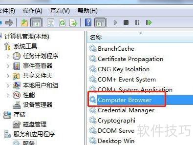 在Win7中禁用Computer Browser服务,可通过服务管理器找到该服务并设置为禁用。