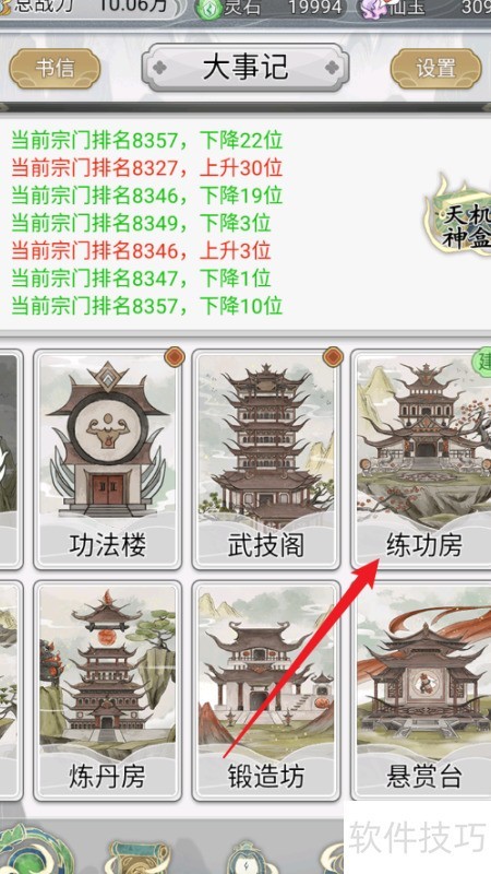 2、 进入修仙宗门2游戏,点击练功房开始修炼。