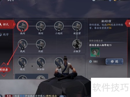 7、 进入武学界面后,可见枪、锤、剑、拳等选项,点击任意一个即可。