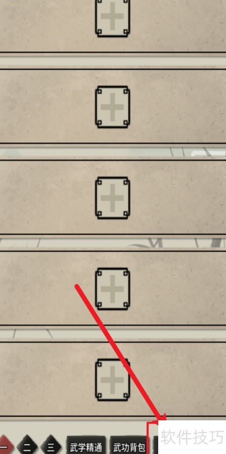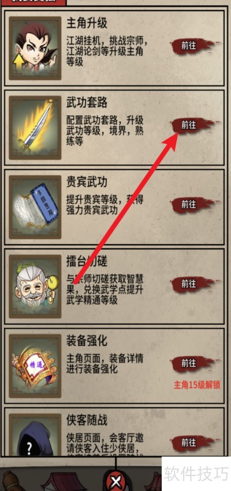 2、 进入武功套路页面,点击底部图标即可。