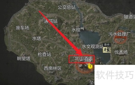 1、 启动暗区突围应用,进入地图后选择并前往北山酒店区域。