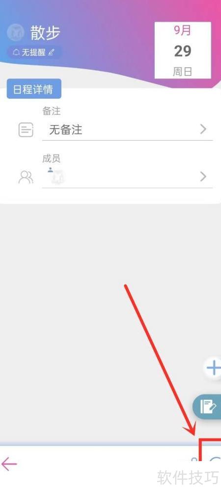 2、 进入日程详情页,点击右下角的三个点图标。