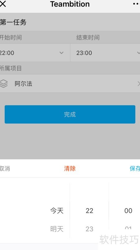 4、 进入添加日程页面后,需填写标题及起止时间,并可选关联所属项目,具体操作如下所示。