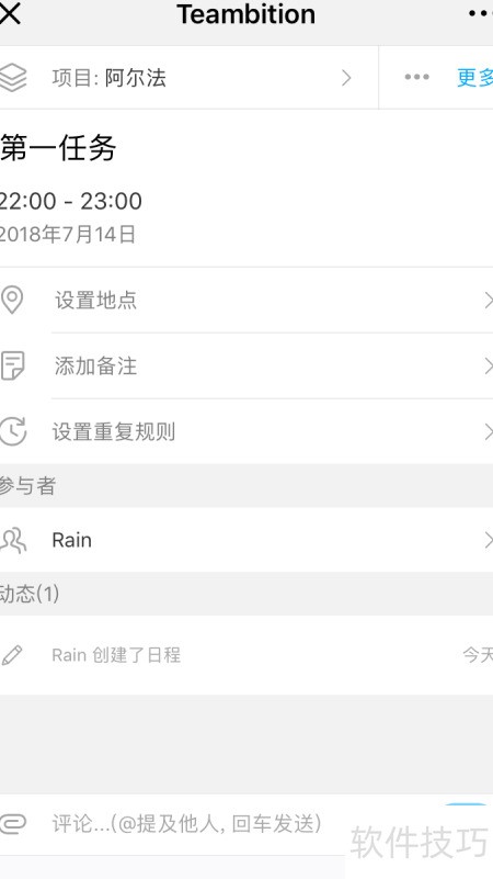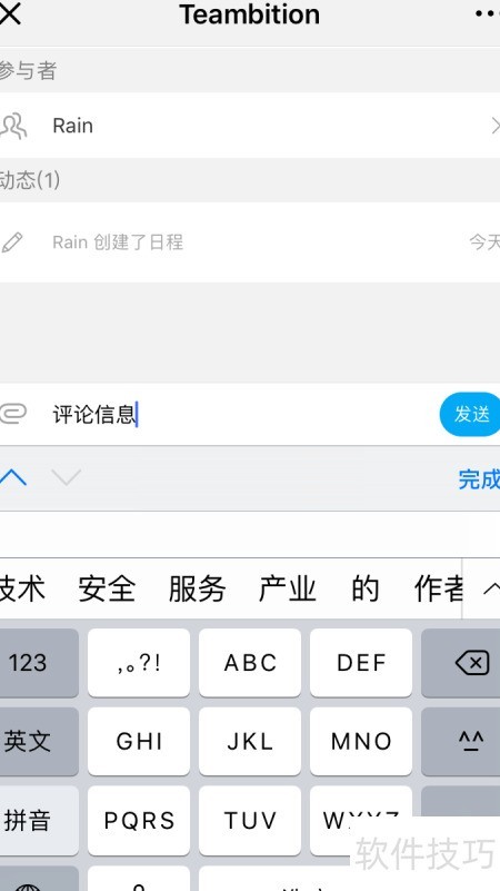 7、 创建日程后可添加参与者,各方可在评论框中留言备注,所有相关人员将及时收到通知信息。