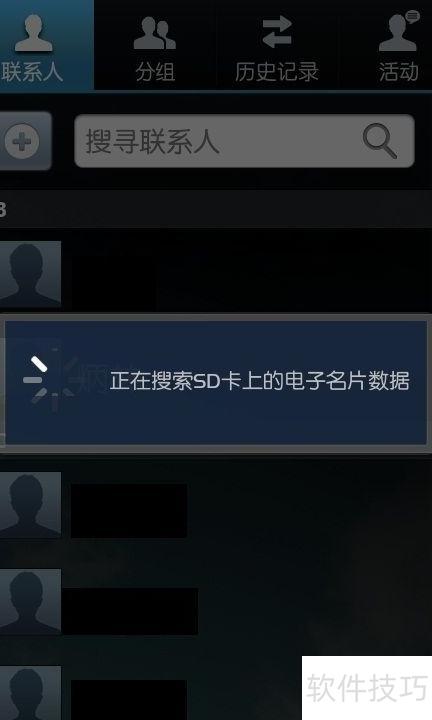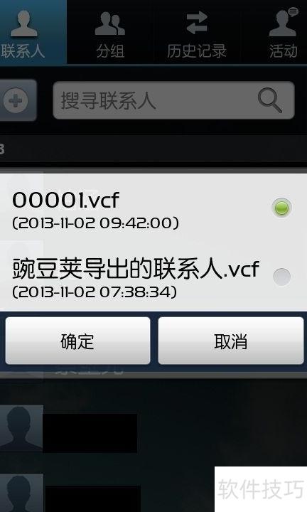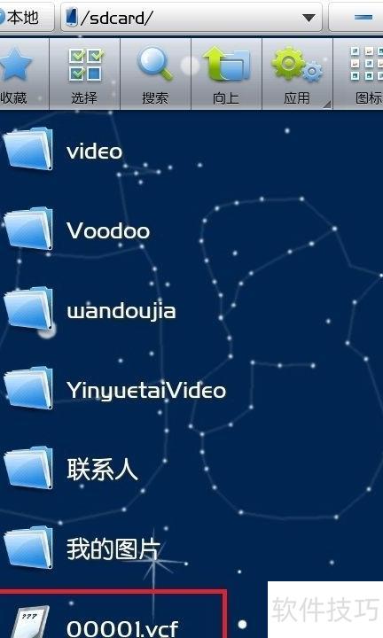4、 系统将自动扫描内置SD卡内以vcf格式存储的通讯录文件。