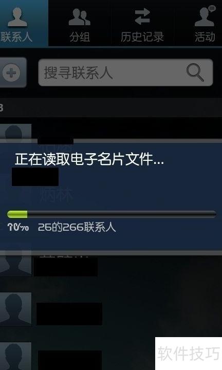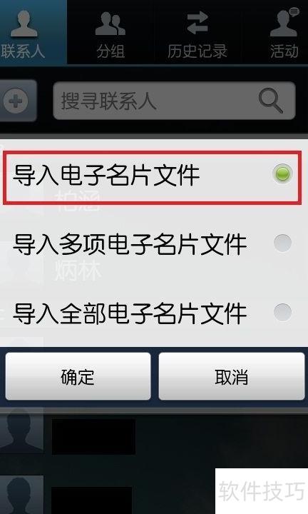 5、 系统识别后将弹出选择窗口(存在多个通讯录备份时),为确保准确无误,请选择导入电子名片文件选项进行操作。