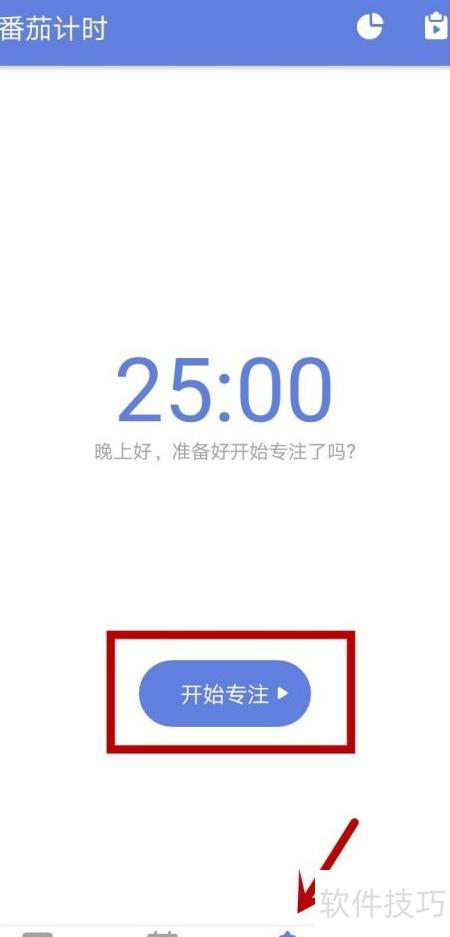 5、 设置完成后返回主界面,点击番茄选项即可启动番茄时钟,操作所示。