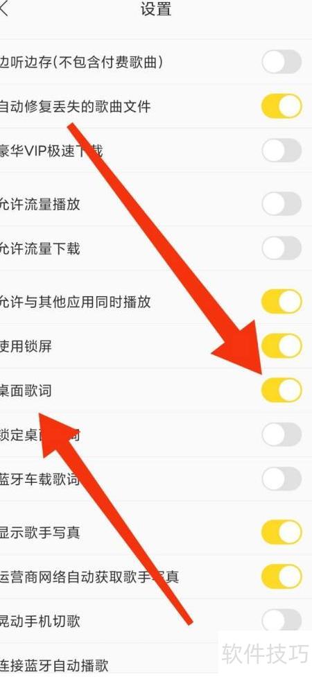 3、 点击进入酷我音乐设置,开启桌面歌词功能即可显示。
