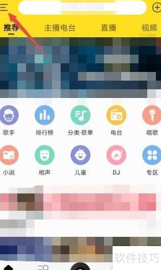 1、 打开酷我音乐,点击左上角菜单按钮。