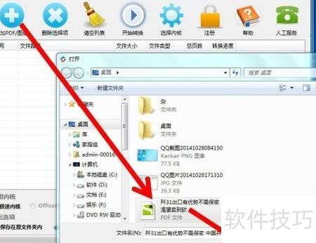 3、 在电脑上安装该软件并启动后,点击界面上的文件添加按钮,将需要提取文字的PDF文档导入软件。成功添加后,所选文件便会显示在软件界面中,便于后续操作和处理,确保文件正确加载以便进行文字提取。