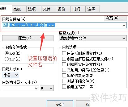 2、 在弹出窗口中设定压缩文件的名称及保存路径